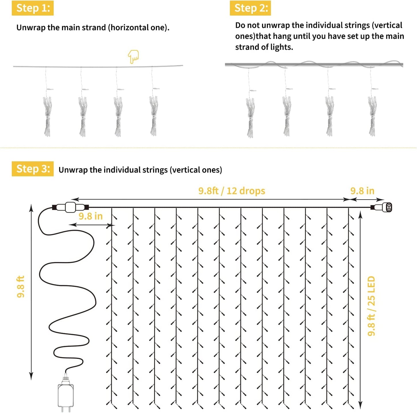 - Sturdy String Wire: The cord is soft so that the curtain string lights are easy to hang and store. The material determines that this curtain string light is not easy to be destroyed and always stay cool